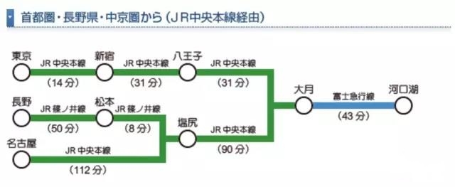 以下是日本各大城市前往河口湖所需的时间: