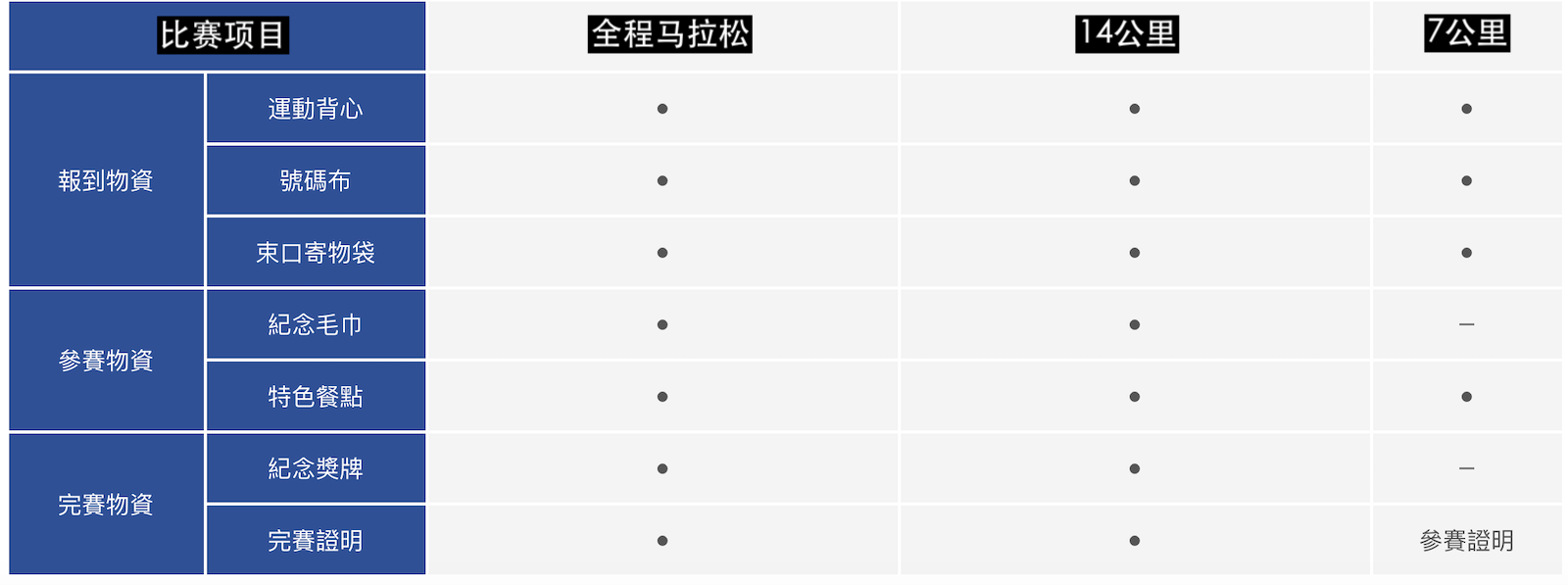比赛项目:全程马拉松、14公里、7公里