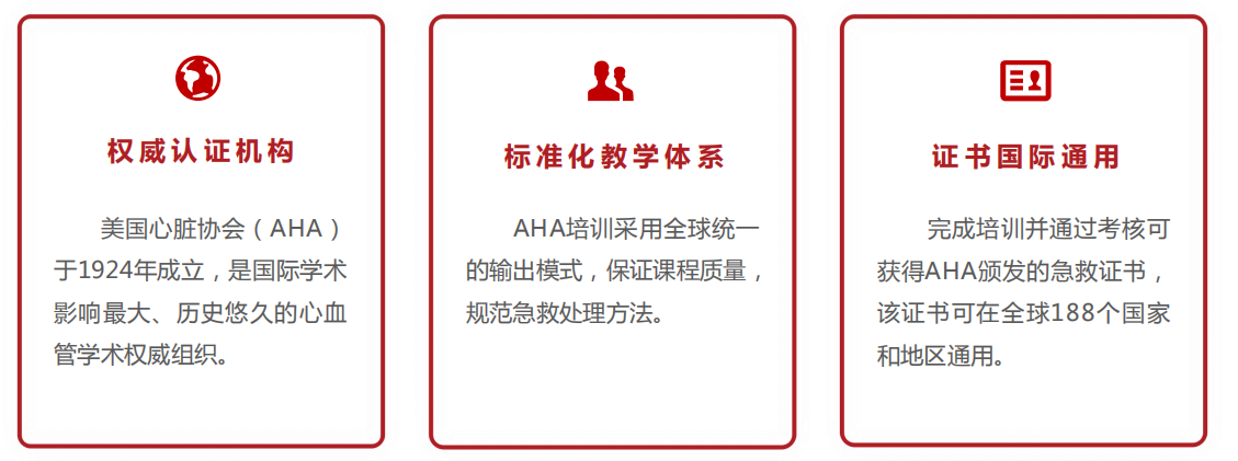 AHA的HS(Heartsaver)社会大众急救培训,全中文授课,全天约8小时的课程中学员将掌握常见急症的判断及处理方式,学会高效的CPR操作及AED的使用,适用与所有年龄段的普通大众。